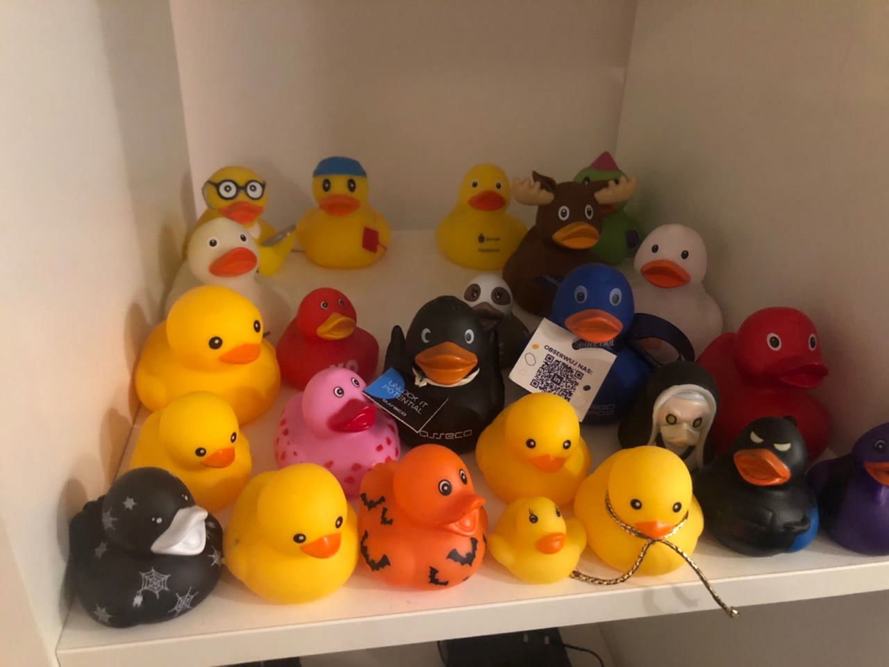 Jak mówiłem - kaczuszek mam około setki. Część mam z konferencji, ale dużo z nich przyszło do mnie od znajomych. Oni wiedzą, że jeśli gdzieś się pojawiają kaczuszki t owarto wziąć dla mnie zawsze jedną czy dwie. Mam także kaczki zza granicy - ze Szkocji, Czech czy z Włoch. I naprawdę super są niektóre. Pokaże Wam jeszcze niektóre z nich: